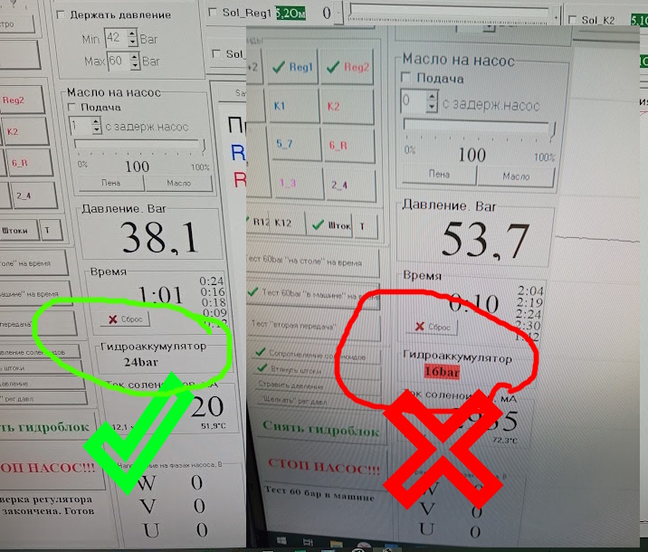 После установки мехатроника на стенд, мы сразу можем проверить состояние гидроаккумулятора