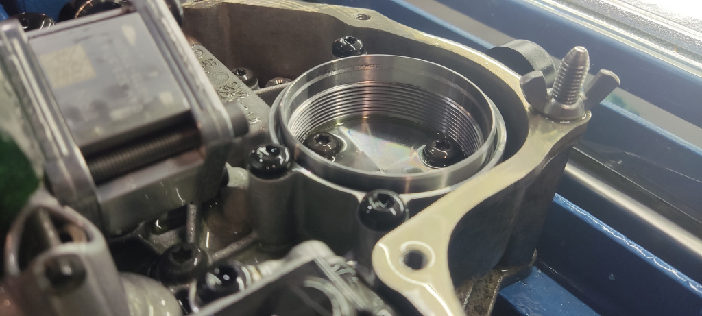 Впервые получив в руки новый мехатроник мы первым делом снимаем плату, крышку и сливаем масло. После чего устанавливаем мехатроник на стенд проверки.